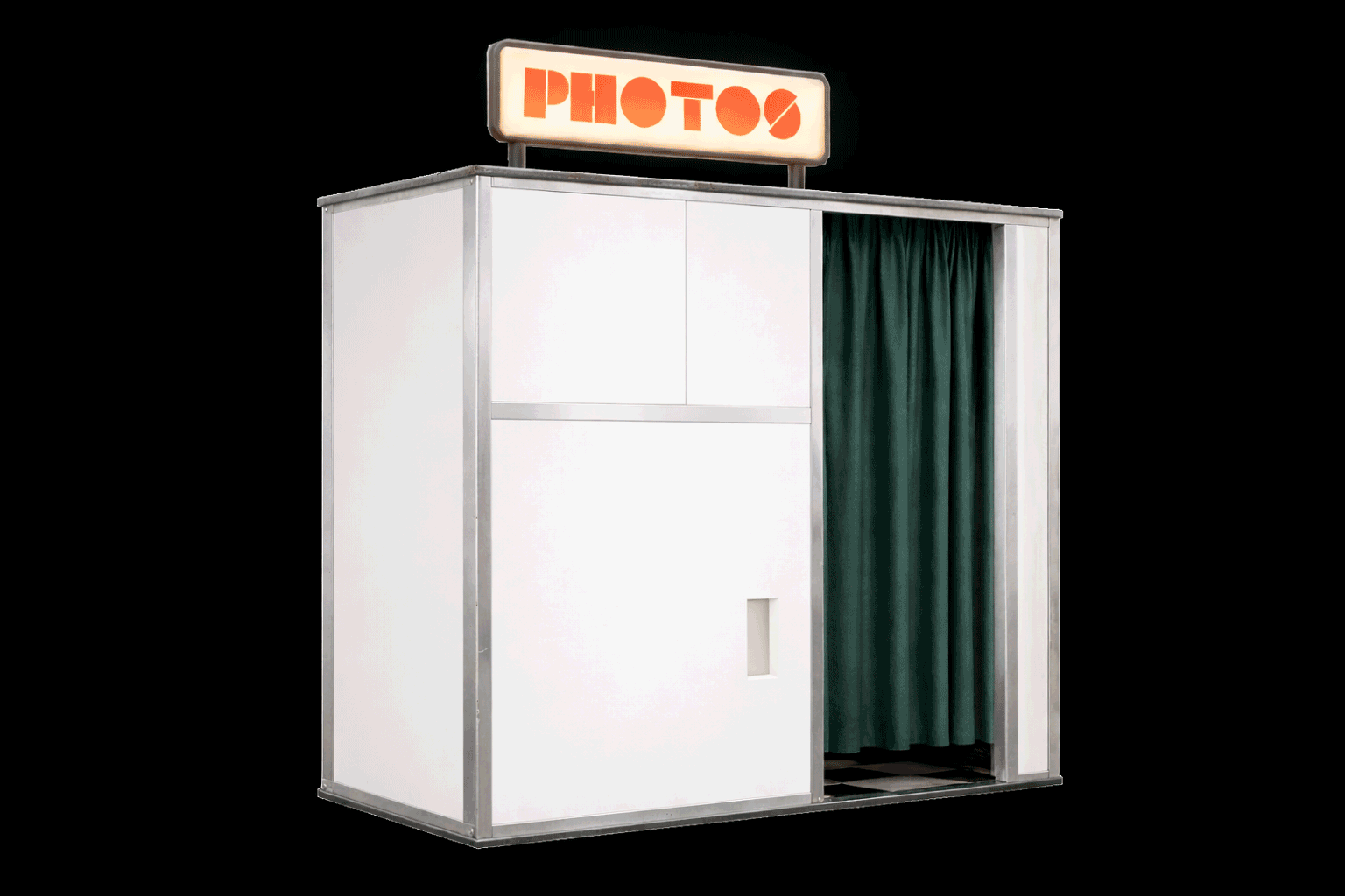 This is a large-format, enclosed photo booth structure built as a freestanding architectural object.